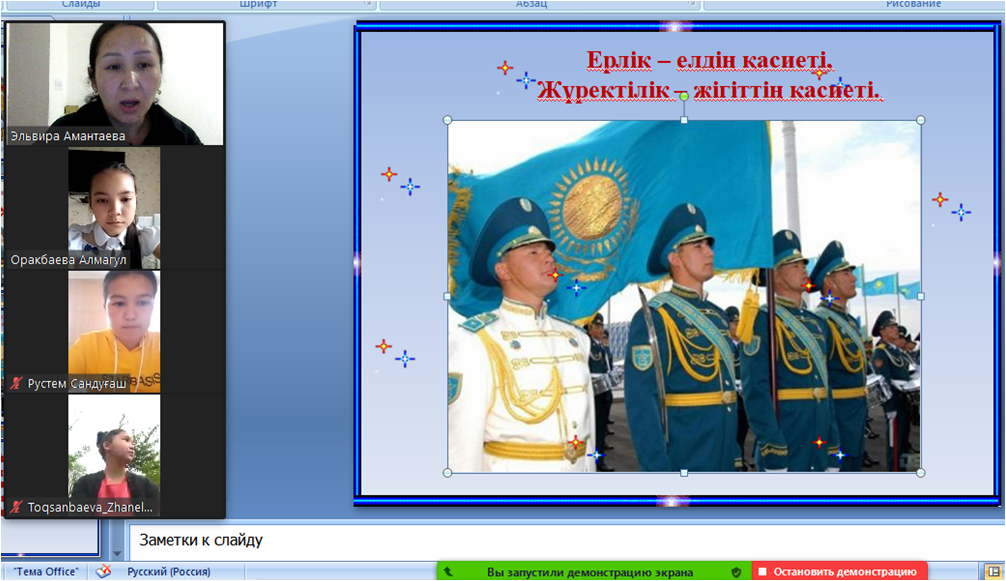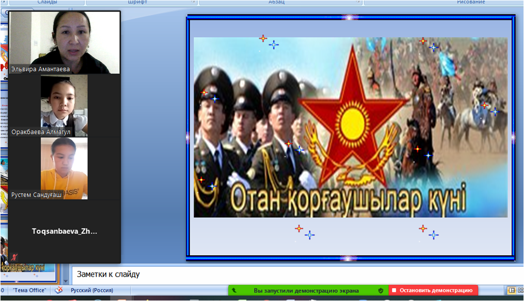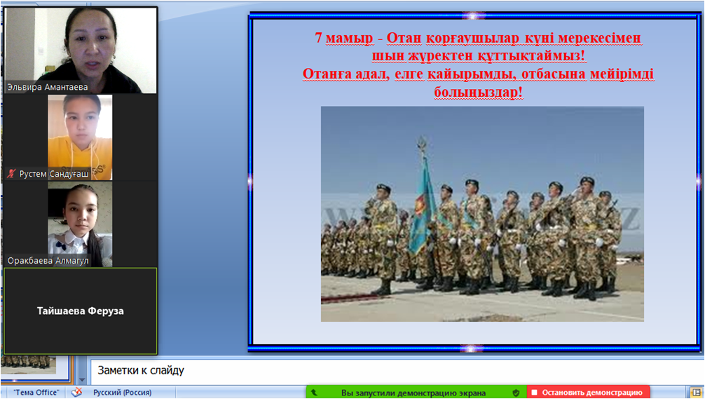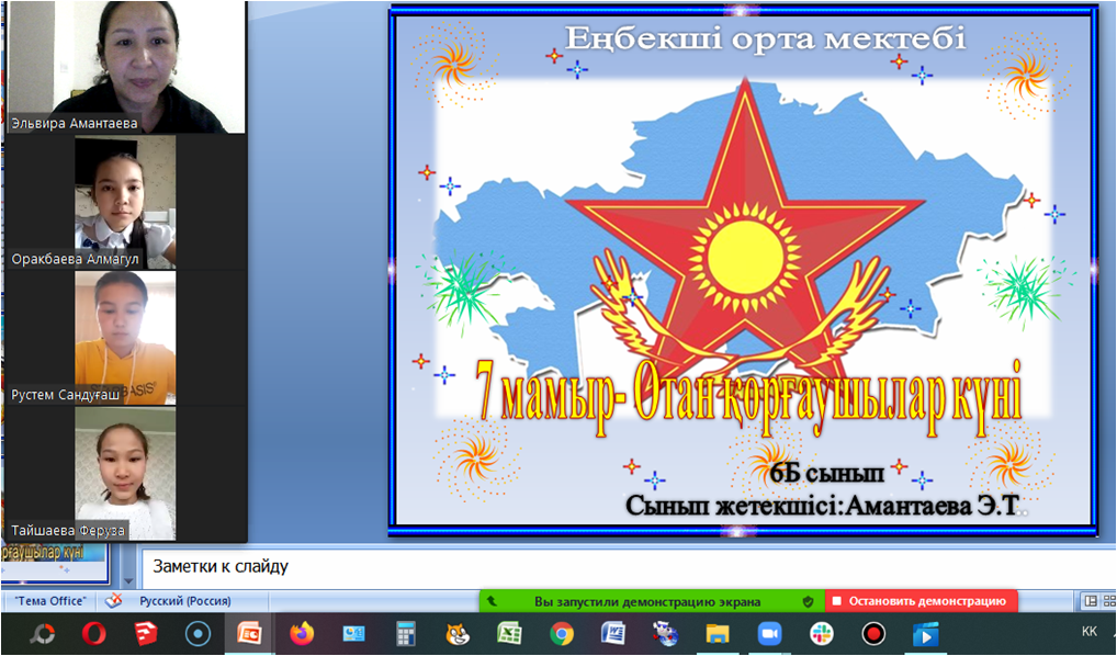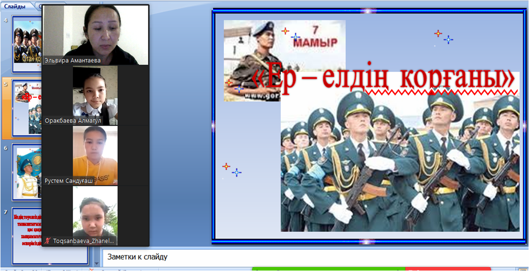 06 May 2021 0 1 2 3 4 5 "Ер - елдің қорғаны" атты тақырыпта сынып сағатын өткізді. 7 мамыр - Отан қорғаушылар күні мерекесіне орай 6"б" сынып оқушыларының қатысуымен "Ер - елдің қорғаны" атты тақырыпта сынып сағатын өткізді.Сынып жетекшісі: Амантаева Э.Т.