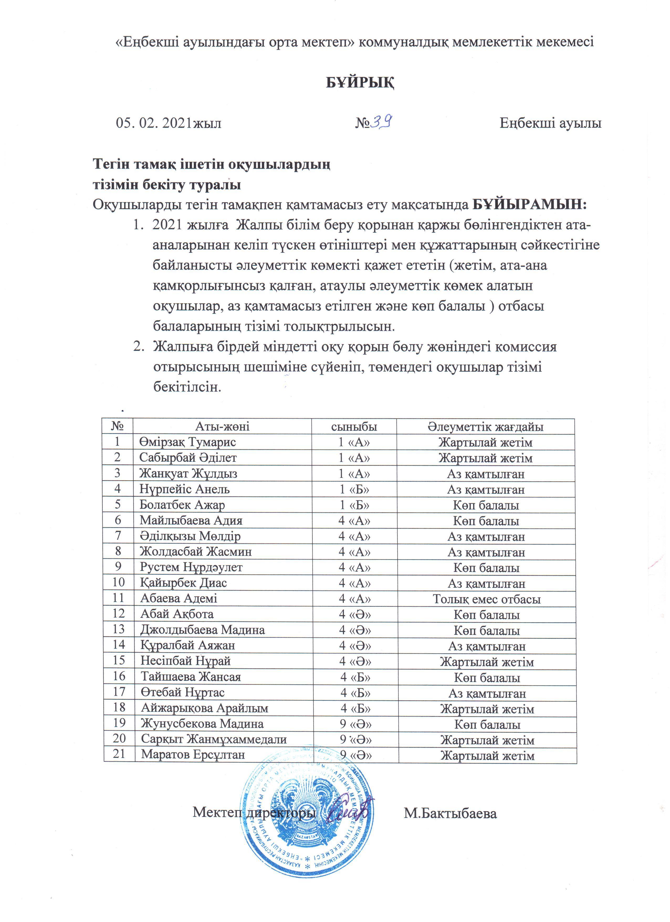 Еңбекші ауылындағы орта мектеп бойынша тегін тамақ мәзірі. » Еңбекші ауылындағы ОМ