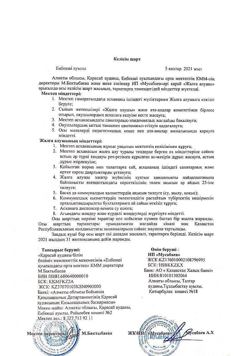 Ыстық тегін тамақ келісім шарттары » Еңбекші ауылындағы ОМ