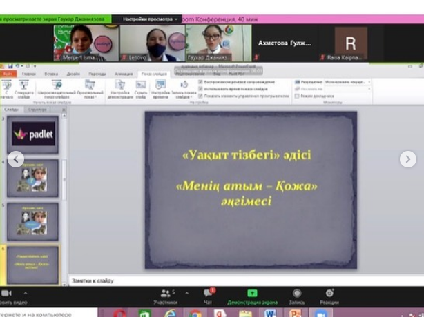 Вебинардың мақсаты: Қашықтықтан оқыту жағдайында белсенді әдіс-тәсілдер мен платформаларды тиімді қолдана отырып, оқушының өздігінен білім алуға үйрету. Оқыту мен оқу тәжірибесіндегі жаңа тәсілдердің тиімді жақтарын көрсету. Мұғалімдердің АКТ құзіреттіліктерін арттыру. Вебинарда мектебіміздің ағылшын тілі мұғалімі Уразбаева З.А., қазақ тілі мен әдебиеті пәні мұғалімі Джаниязова Г.Қ., математика пәні мұғалімі Егизбаева А.Ж., география пәні мұғалімі (жас маман) Исмаилова М.К. өз тәжірибелерімен бөлісті.