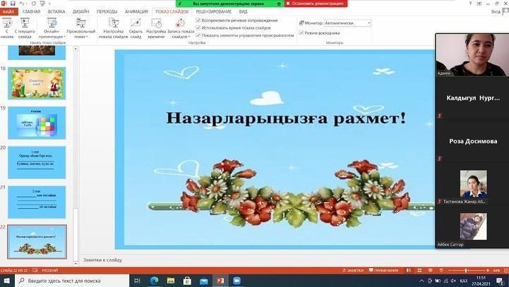 19.04-30.04.2021ж. "Тәлімгер мен жас маман арасындағы байланыс" атты бірлескен онкүндік жұмыс жоспарына сәйкес 27.04.2021ж. күні Тәлімгер Нургалиева К.М. мен жас маман Қанатова Т.Қ. ұйымдастыруымен 7 сыныптар арасында "Жерұйық" атты тарихи-әдеби танымдық сайыс сабағын өтті.