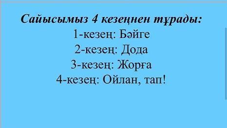 Сайыс сабақтың мақсаты: Әдебиет сабағы барысында 1-жартыжылдық бойынша алған білімдерін саралау. Көркем шығармалар арқылы оқушыны өмірді терең түсіне білуге, өнерді өз пайдасы үшін пайдалануға, жан-жақты терең білімділікке тәрбиелеу.