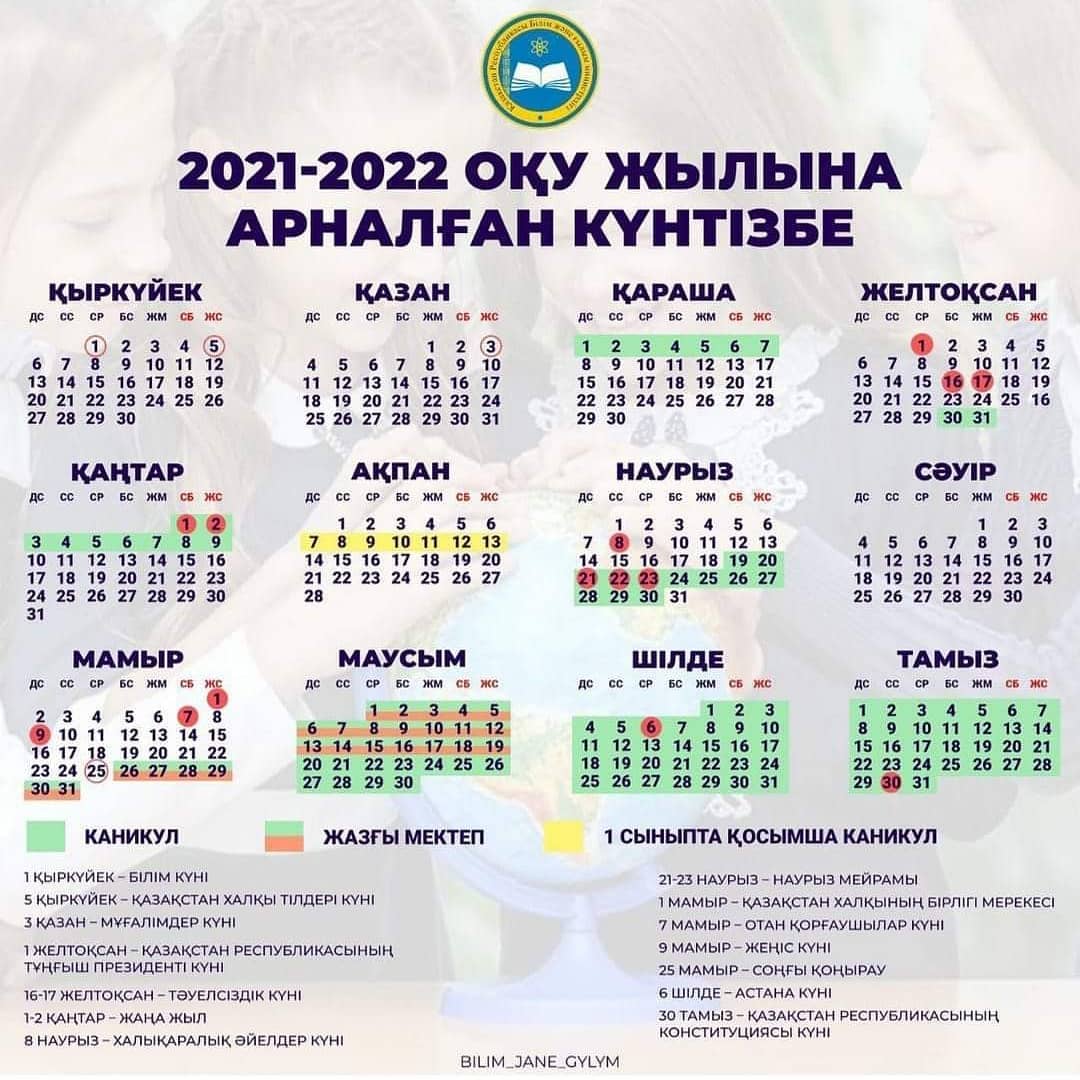 2021-2022 оқу жылына арналған күнтізбе