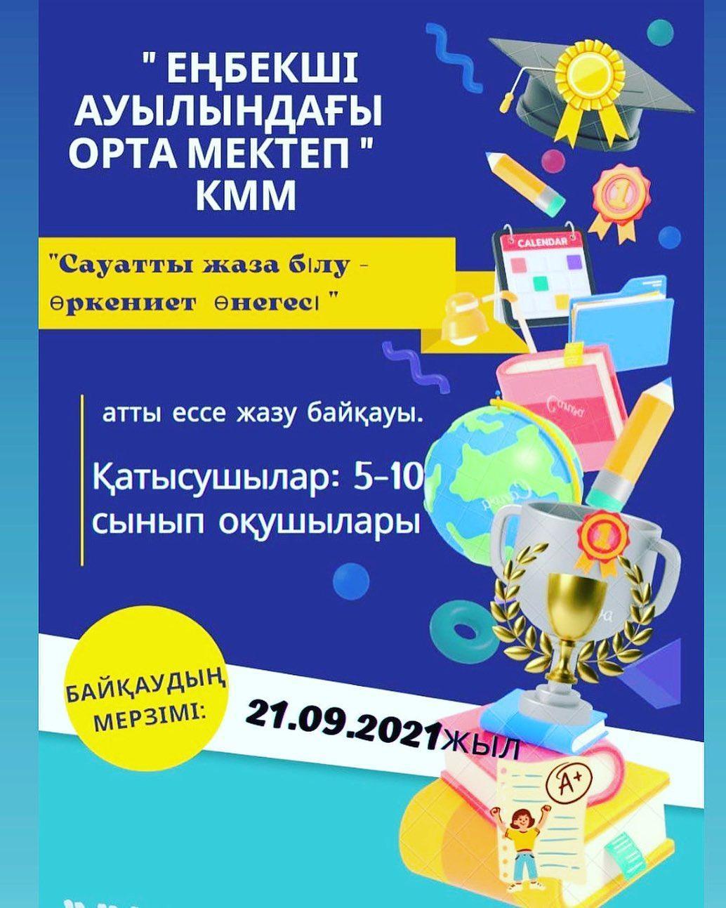 "Сауатты жаза білу - өркениет өнегесі" атты эссе жазу байқауы өтеді. » Еңбекші ауылындағы ОМ