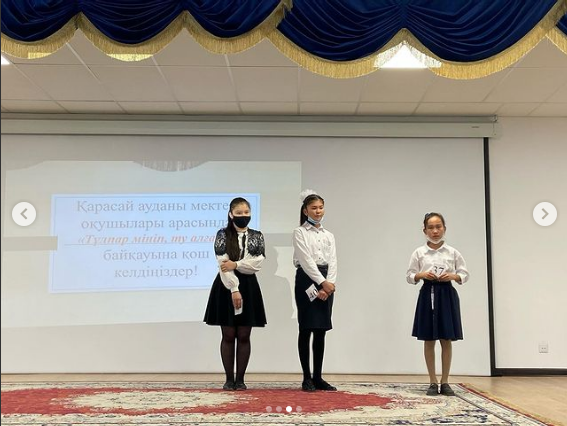 “Тұлпар мініп, ту алған” тақырыбында өткен аудандық мектеп оқушылары арасындағы Ер Едіге батыр жыры байқауына мектебіміздің 7”Ә” сынып оқушылары Сагиндик Каусар мен Қылышбай Арайлым қатысты.
