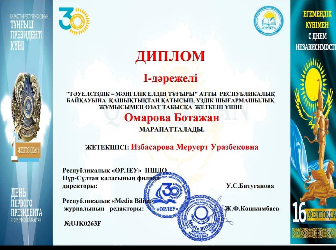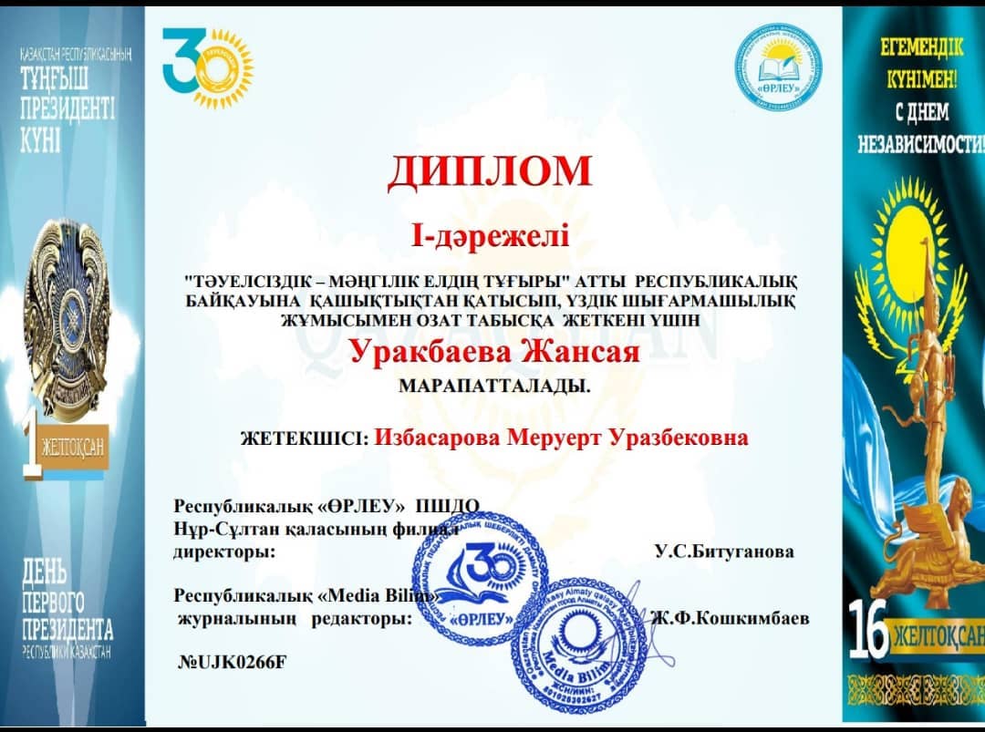 » » Тәуелсіздіктің 30 жылдығына орай өткізілген байқау жеңімпаздары
