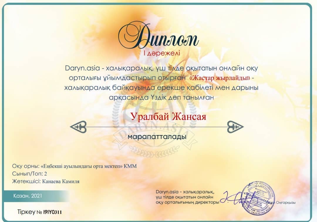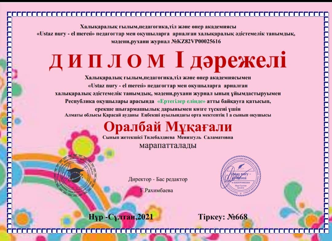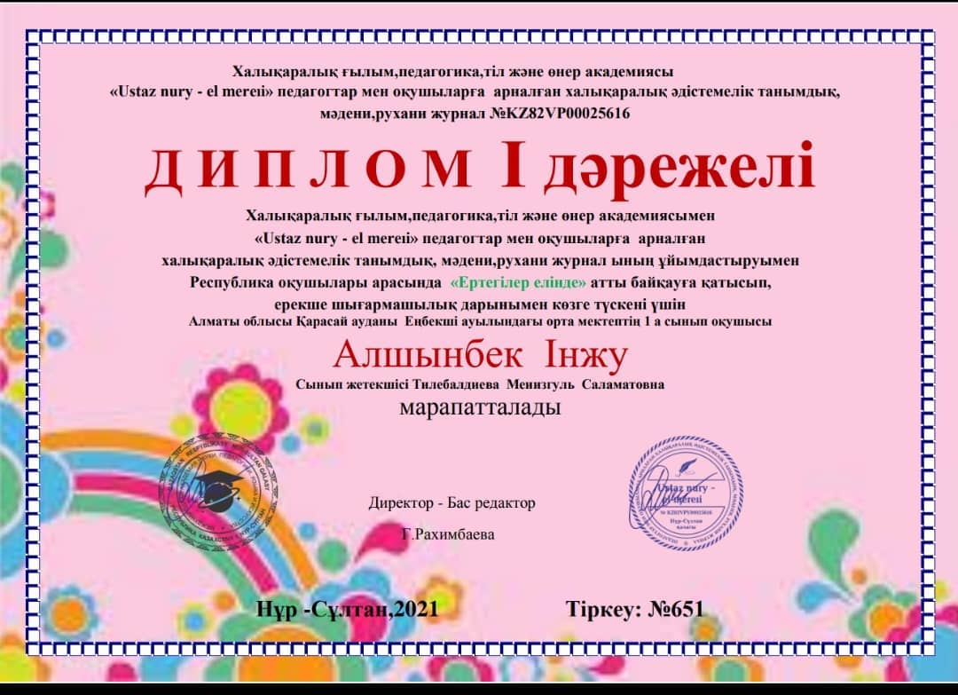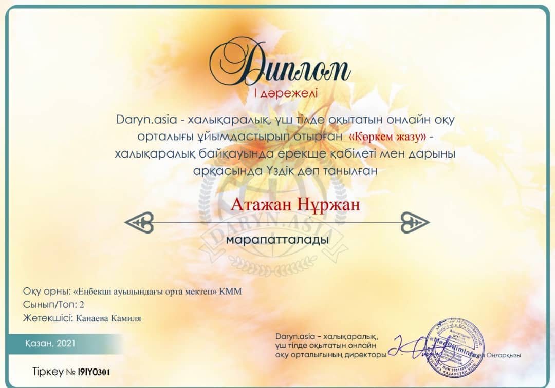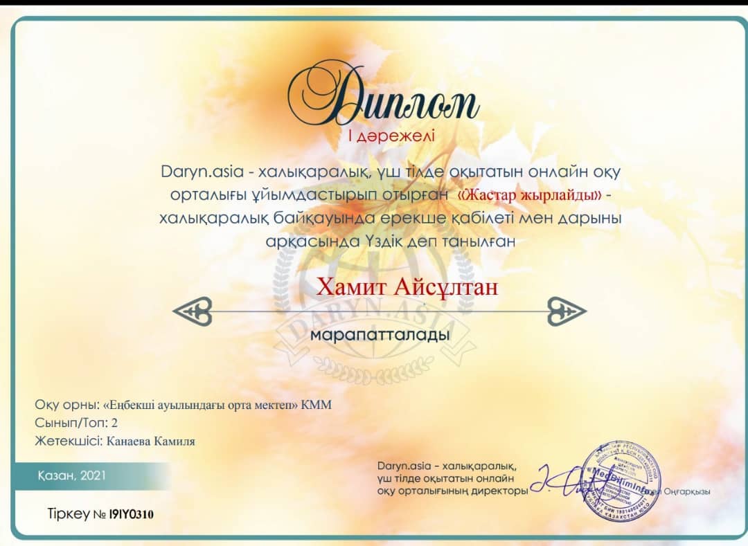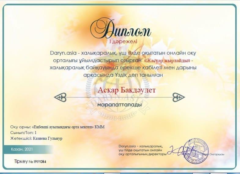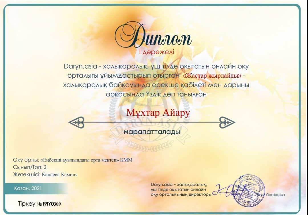 Тәуелсіздіктің 30 жылдығына орай өткізілген байқау жеңімпаздары » Еңбекші ауылындағы ОМ