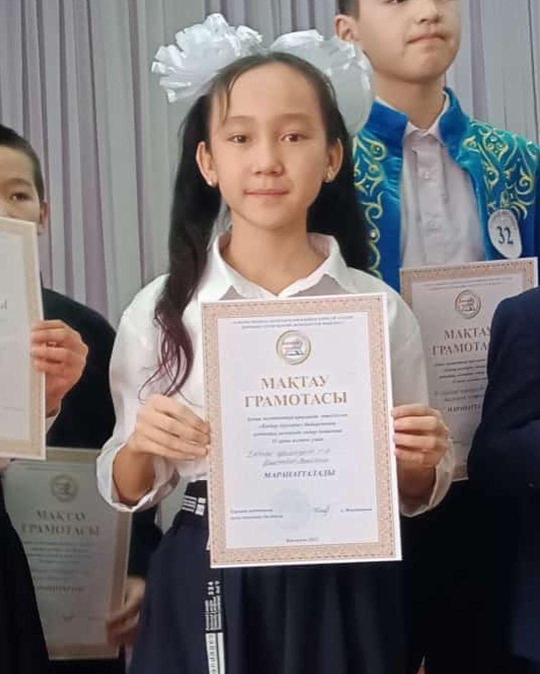 Еңбекші ауылындағы ОМ » Жаңалықтар » Аудан мектептері арасында өткізілген “Қадыр оқулары” байқауының аудандық кезеңінде әндер бойынша ІІ орын алғаны үшін Қылышбай Арайлым марапатталды.