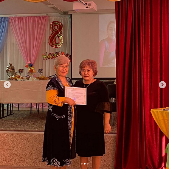 8 наурыз Халықаралық әйелдер күні мерекесі қарсаңында Қарасай ауданы білім бөлімінің Құрмет грамотасымен марапатталды