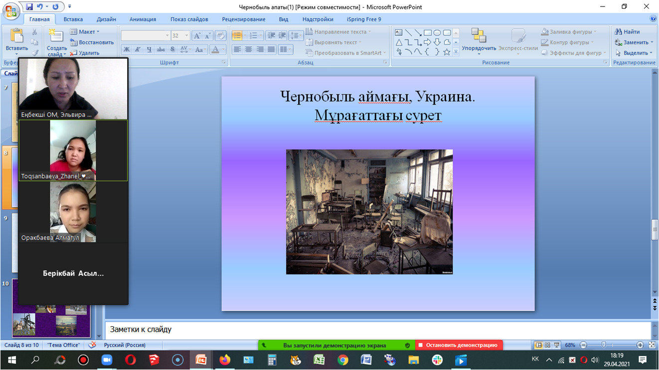Чернобыль апатының - 35 жылдығына орай 6”б” сынып оқушыларының қатысуымен “Чернобыль жаңғырығы” атты тақырыпта сынып сағатын өтті. » Еңбекші ауылындағы ОМ