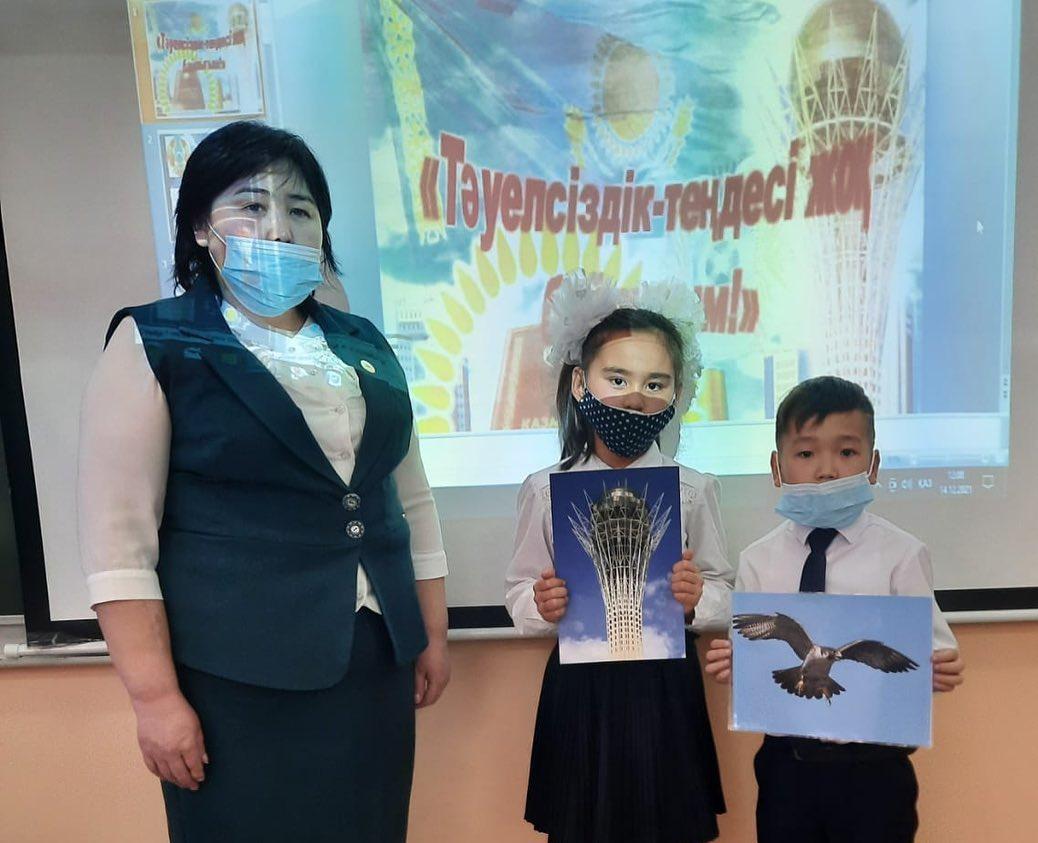 Қазақстан Республикасының Тәуелсіздігінің 30 жылдығына орай 2 “Ә” сынып оқушыларымен “Тәуелсіздік- теңдесі жоқ байлығым! ” тақырыбында Тлеулиева А.Б тәрбие сағатын өткізді.