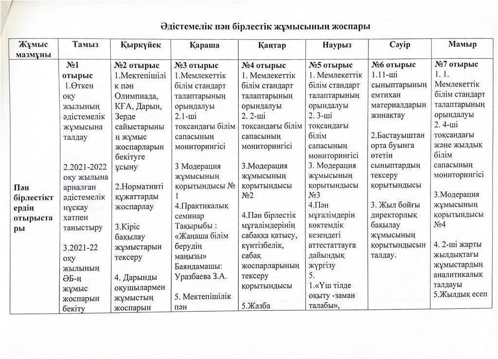 » » » "Бірлік" ағылшын тілі пәні бірлестігінің жылдық жоспары 2021-2022 о.ж.