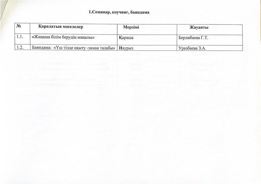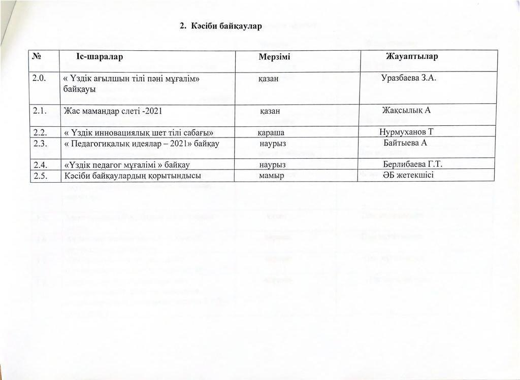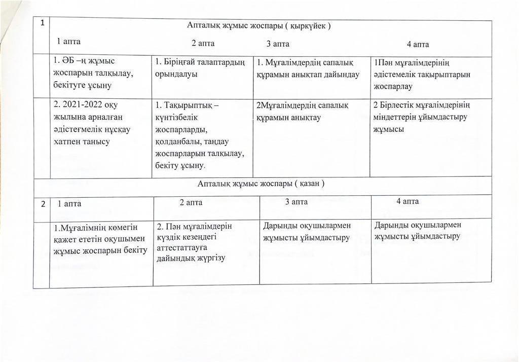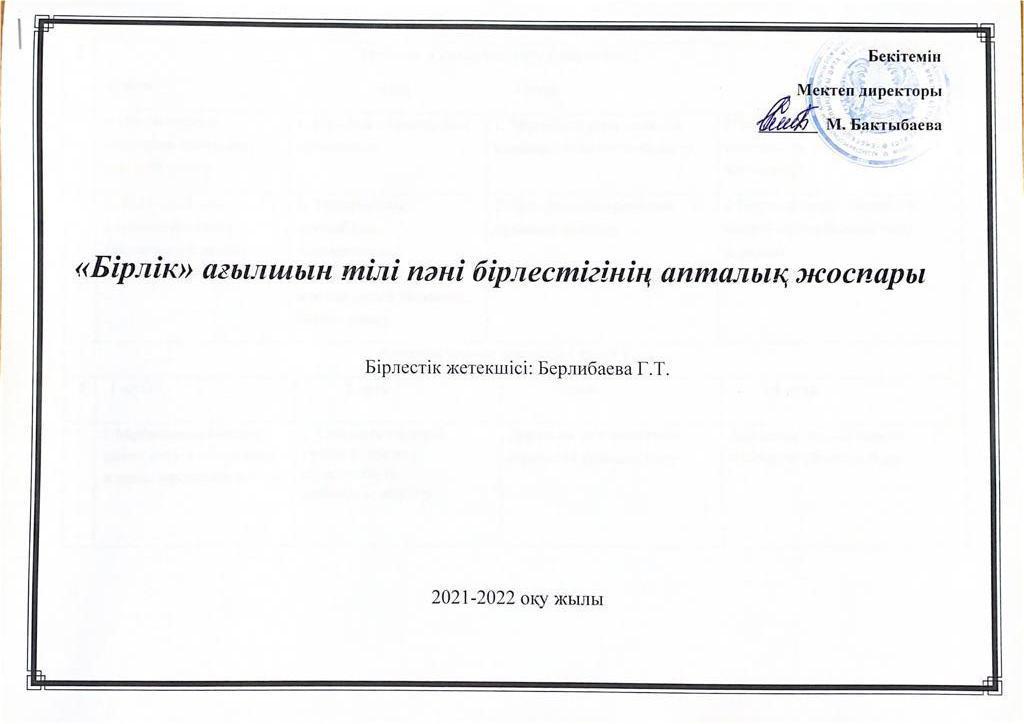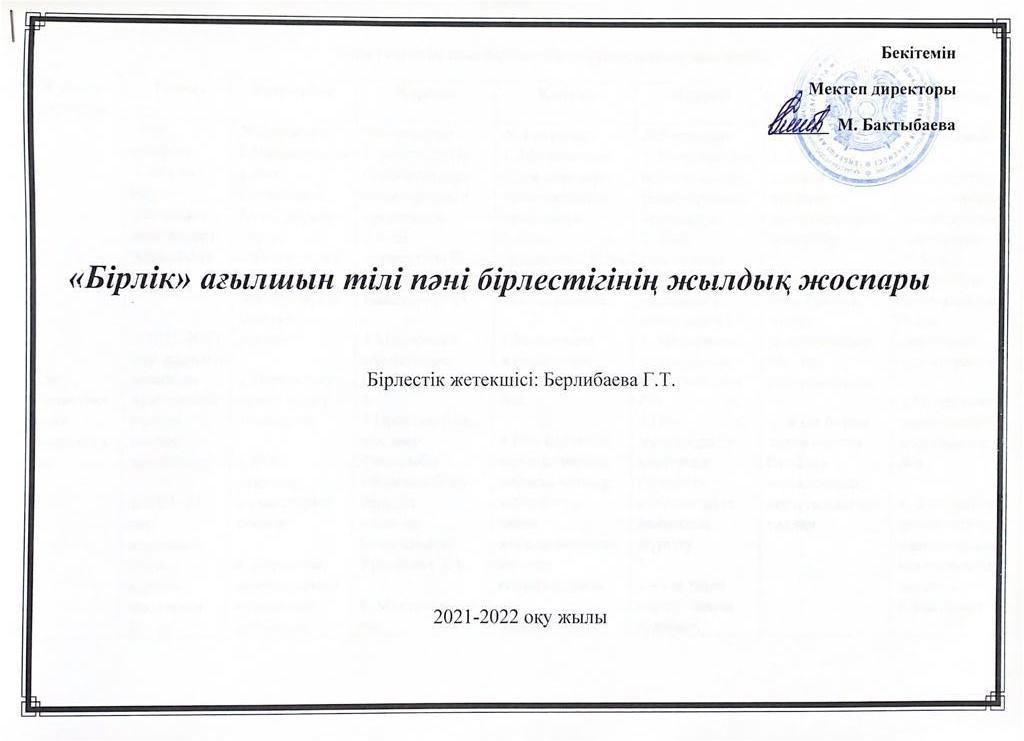 "Бірлік" ағылшын тілі пәні бірлестігінің жылдық жоспары 2021-2022 о.ж.