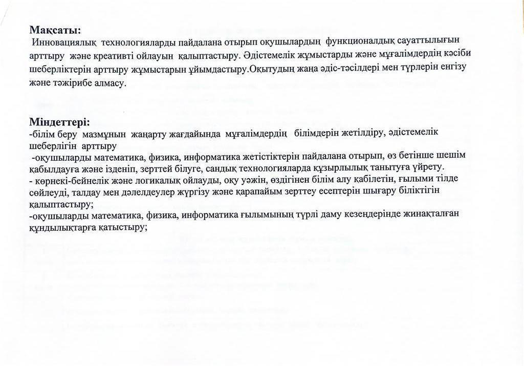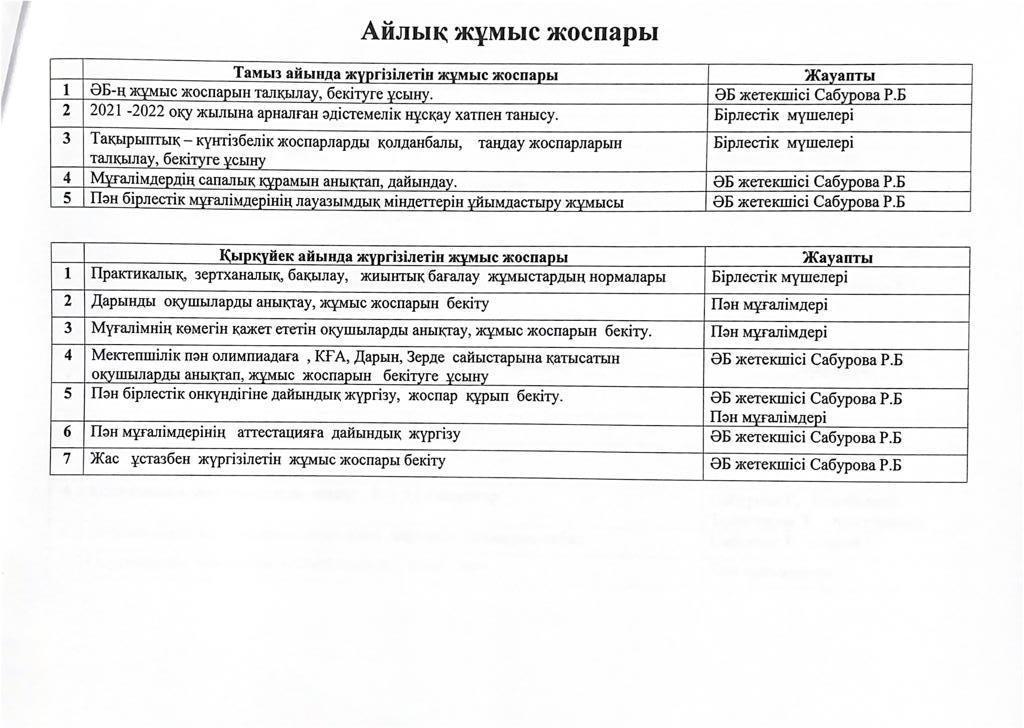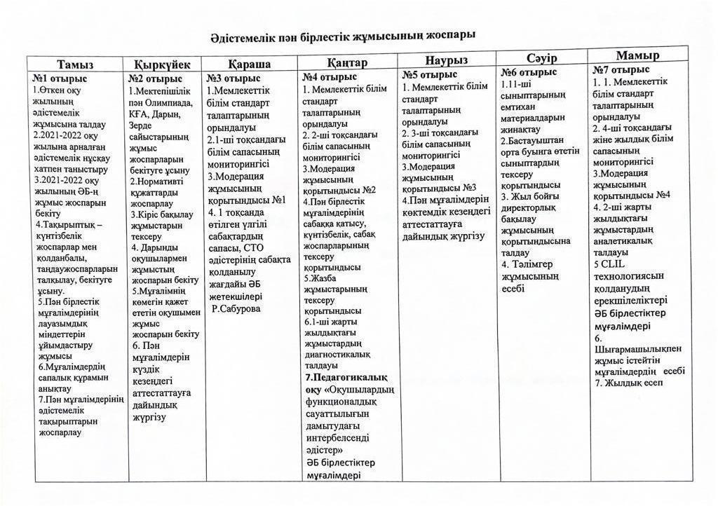 "АлгоИФМ" әдістемелік бірлестік жылдық, айлық жоспарлары 2021-2022 о.ж » Еңбекші ауылындағы ОМ