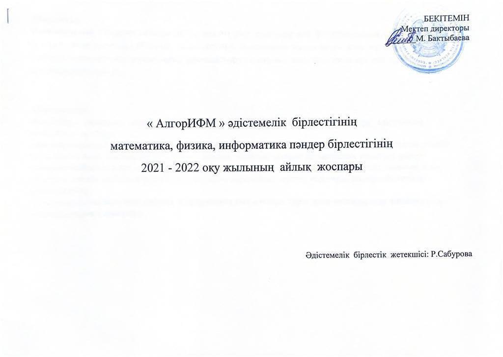 » » » "АлгоИФМ" әдістемелік бірлестік жылдық, айлық жоспарлары 2021-2022 о.ж