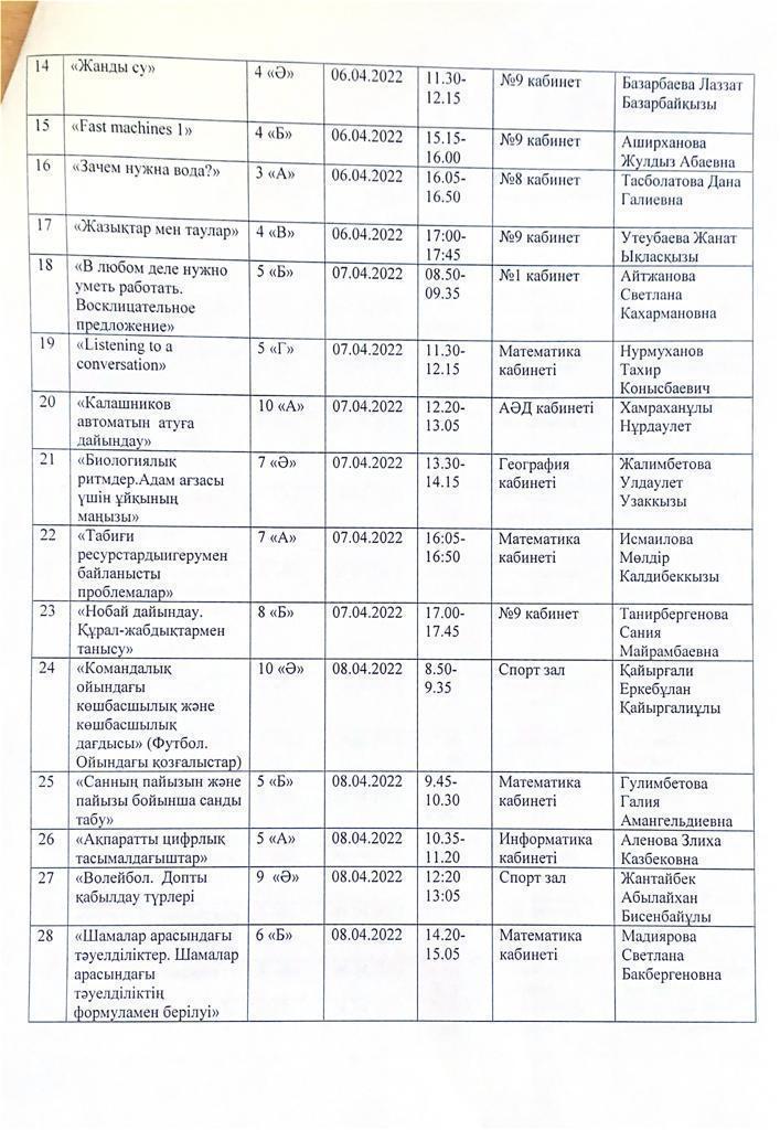 01 апрель 2022 0 1 2 3 4 5 "Жарқын болашақ иесі - бүгінгі жас маман" тақырыбындағы онкүндігінің жоспары