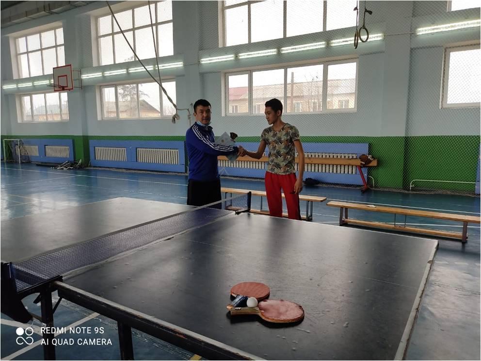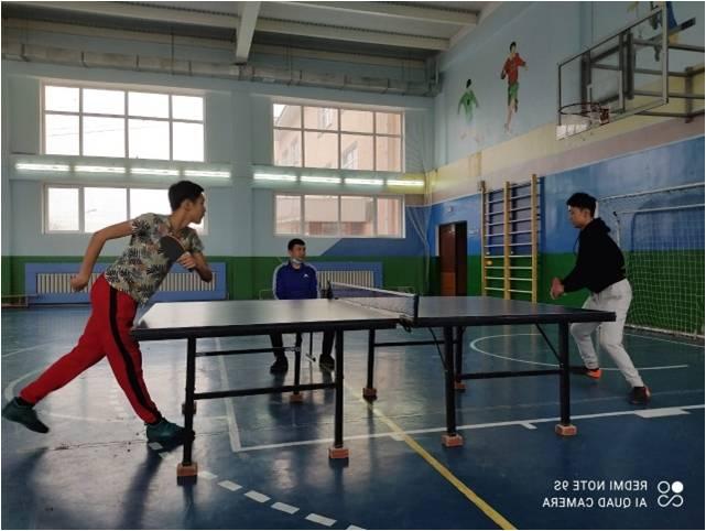 23.02.2021 жылы 9 – 11 сыныптар арасында үстел теннисінен жарыс өтті. Жарысқа он оқушы қатысты. Жарыс 3 кезеңнен тұрды: топтық, жартылай финал, финал. Жарыс нәтижесі бойынша жүлделі үшінші орынды 11 А сынып оқушысы Туракбаев Ерқанат иеленді. Екінші орынға 11 Ә сынып оқушысы Хамза Мәди ие болды. Бірінші орынға 11 А сынып оқушысы Каһарманов Серік жеңіп алды. Жүлдегелер мақтау қағаздарымен марапатталды.
