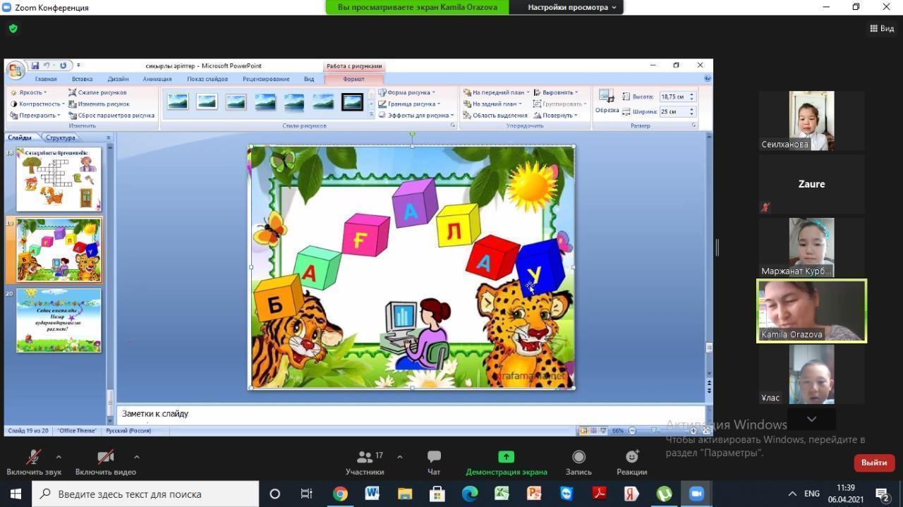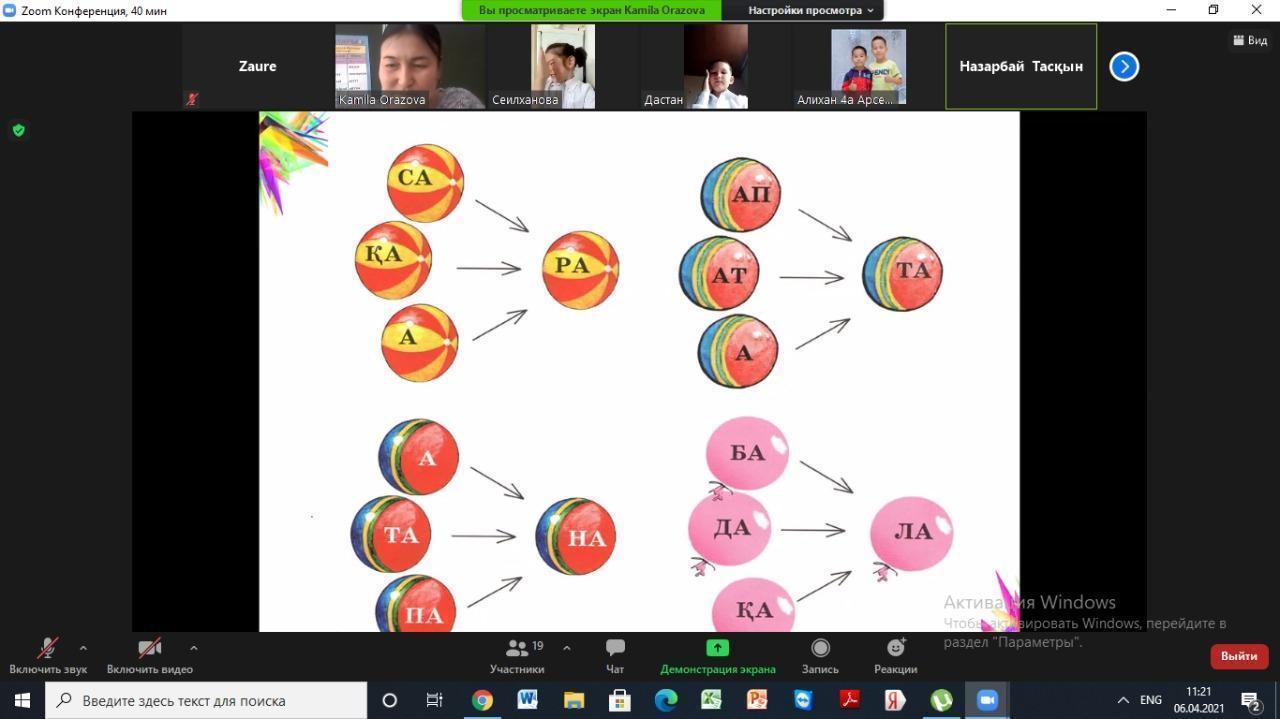 06.04-16.04.2021ж. күндер аралығында үйірме онкүндігі басталды. Онкүндік қарсаңында 2 “а”, 2 “ә”, 2”б” сынып оқушыларының қатысуымен “Сиқырлы әріптер мен сөздер” атты тақырыпта ашық сабақ өтті.