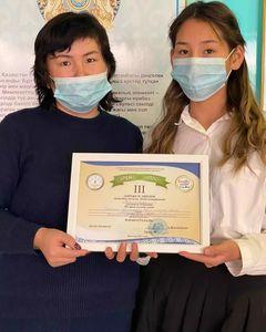 11 сынып оқушысы Айтжанова Жұма "Тіл білімі" секциясы бойынша ағылшын тілінде өз жобасын қорғап, ІІІ жүлделі орын иеленді. Жетекшісі: Берлибаева Г.Т.