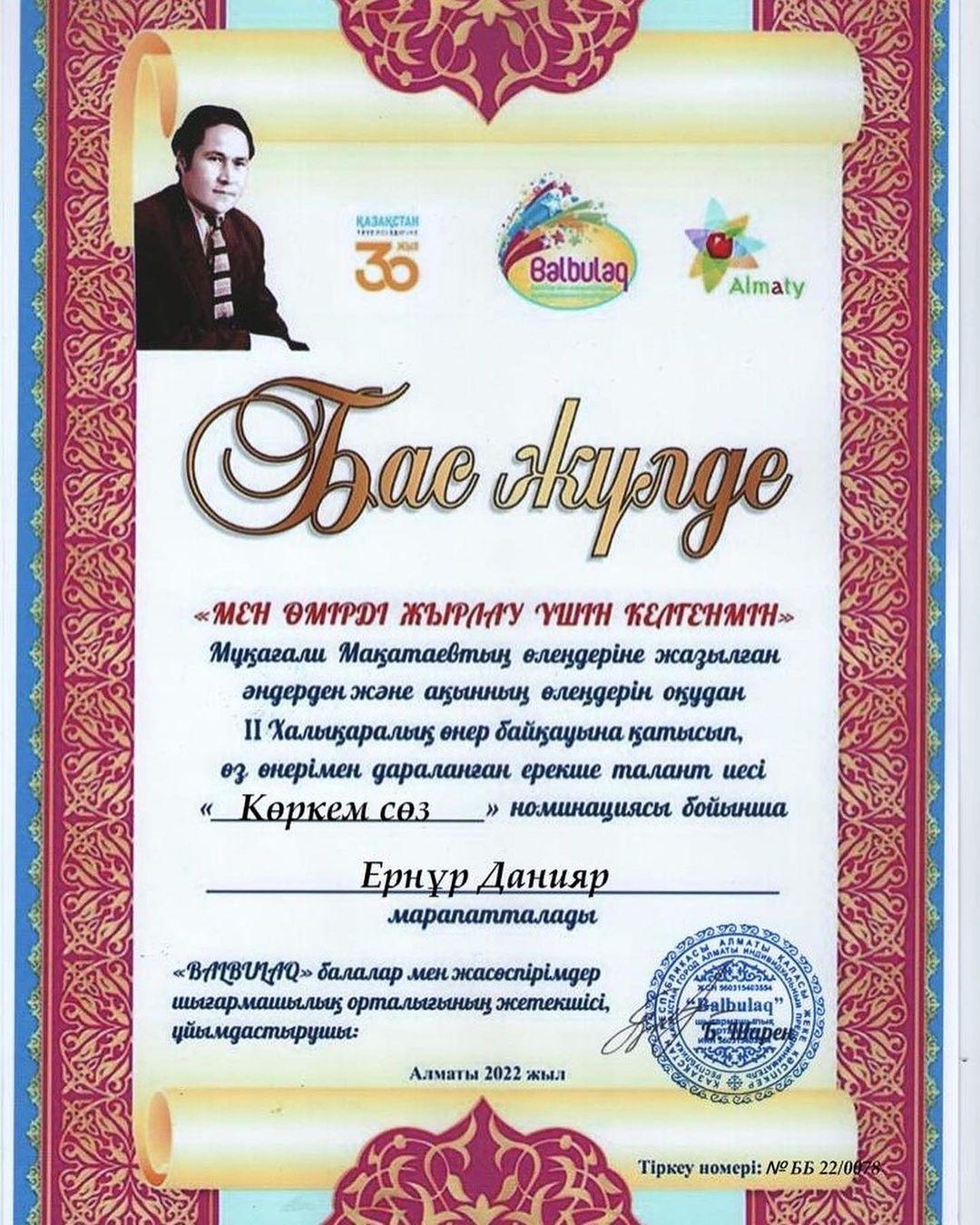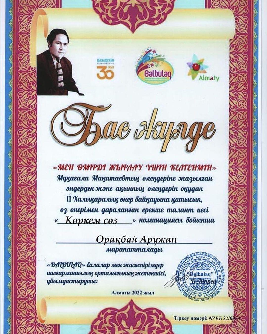 Ернұр Данияр- бас жүлде, Орақбай Аружан - бас жүлде,