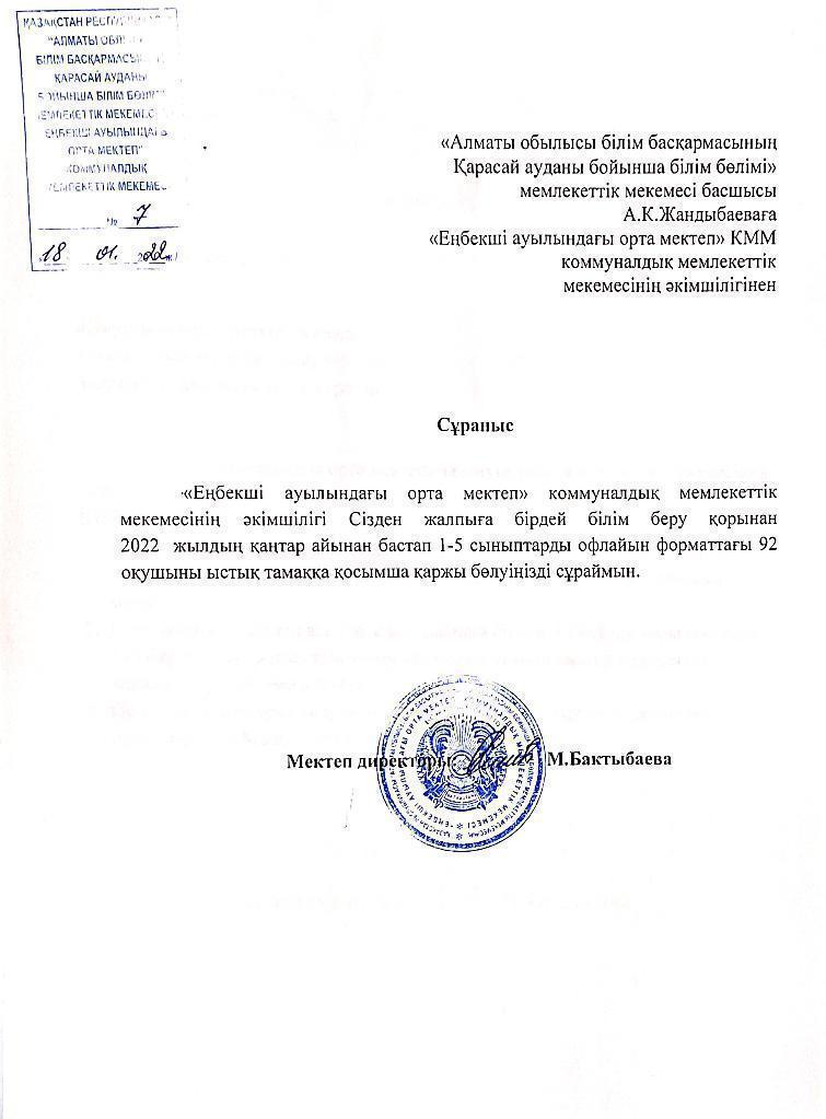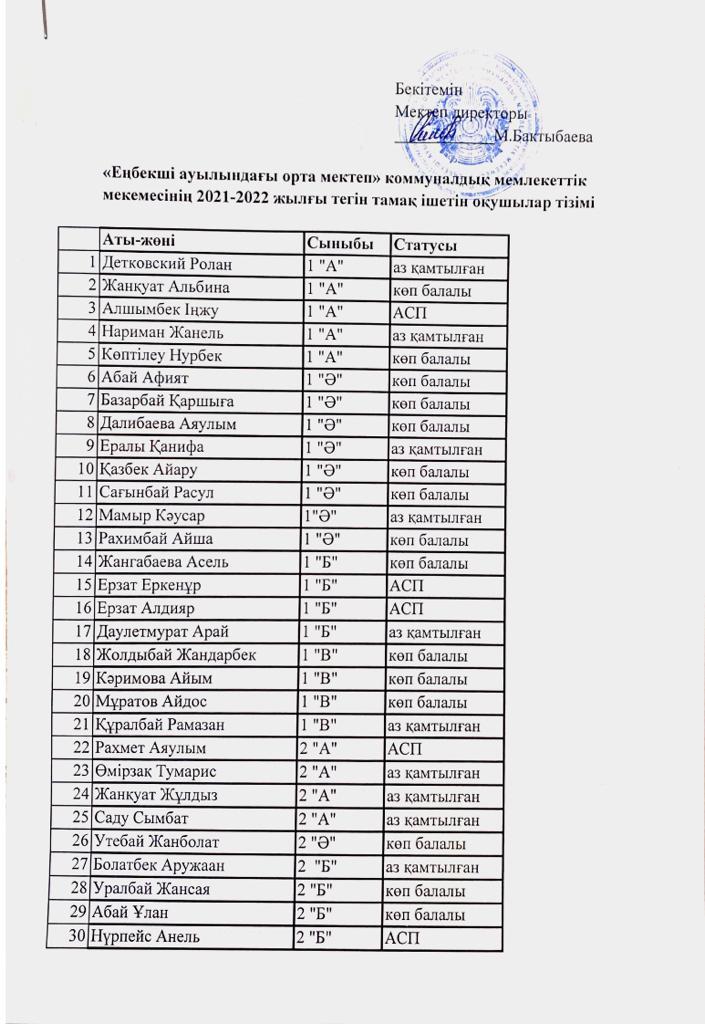 Тегін тамақ бойынша құжаттар (сұраныс, кесте, тізім) » Еңбекші ауылындағы ОМ