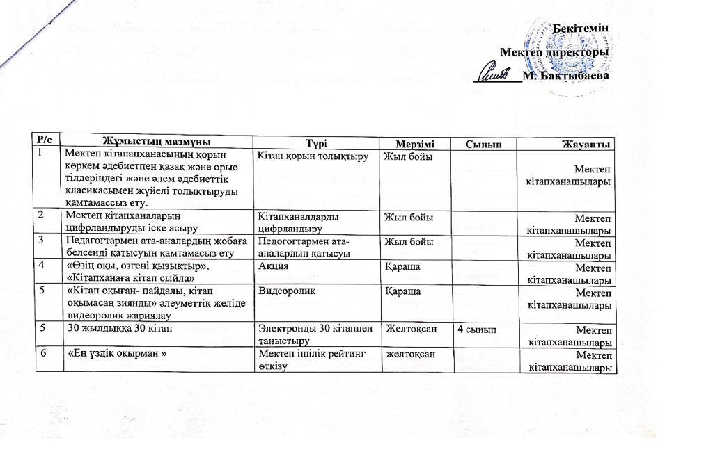 » » » Оқуға құштар мектеп жобасының жоспары 2021-2022 оқу жылы