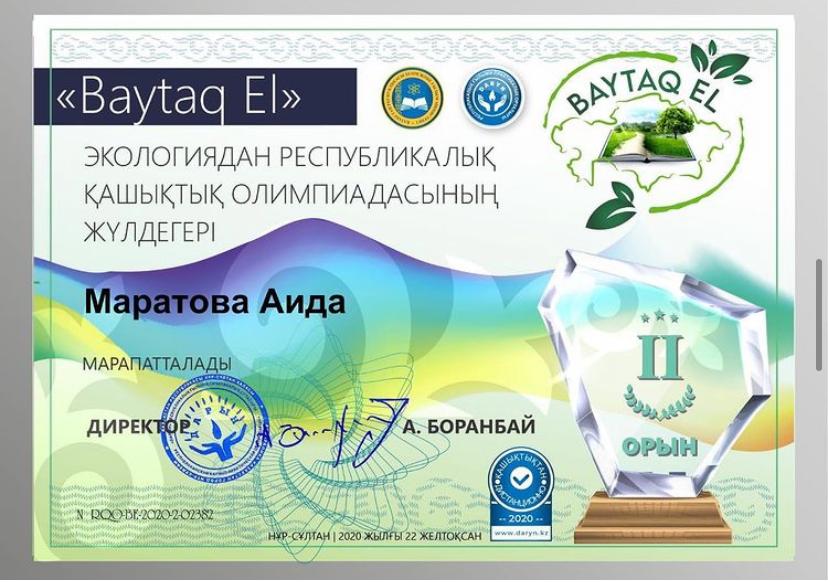 "Байтақ ел" экологиядан қашықтық олимпиадасының жүлдегерлері » Еңбекші ауылындағы ОМ