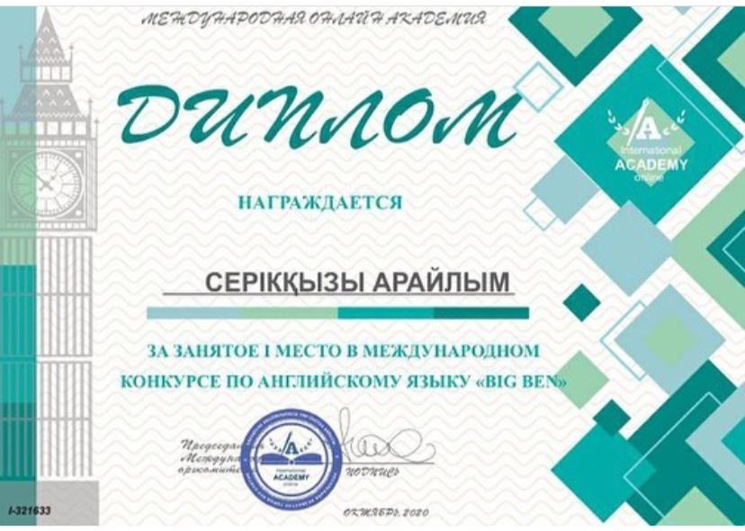 "Big Ben" ағылшын тілінен халықаралық олипиада жүлдегерлері » Еңбекші ауылындағы ОМ