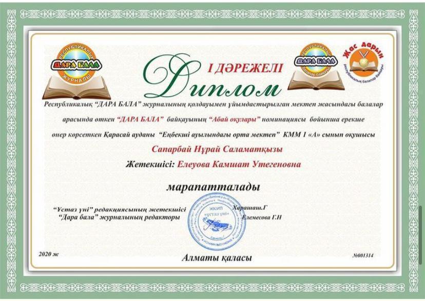 "Дарабала" байқауының жеңімпаздары » Еңбекші ауылындағы ОМ